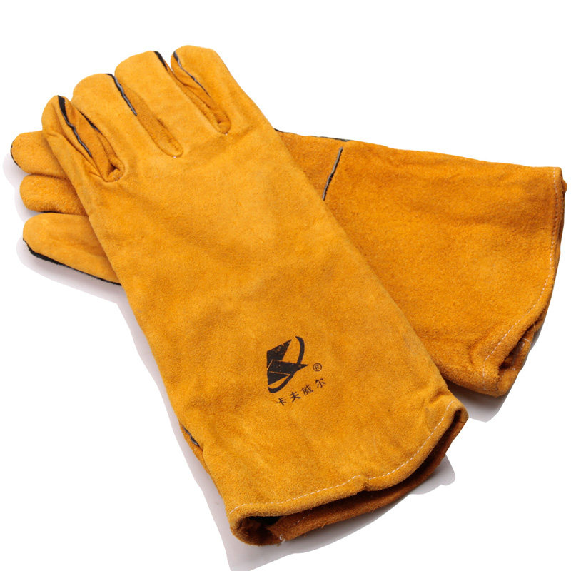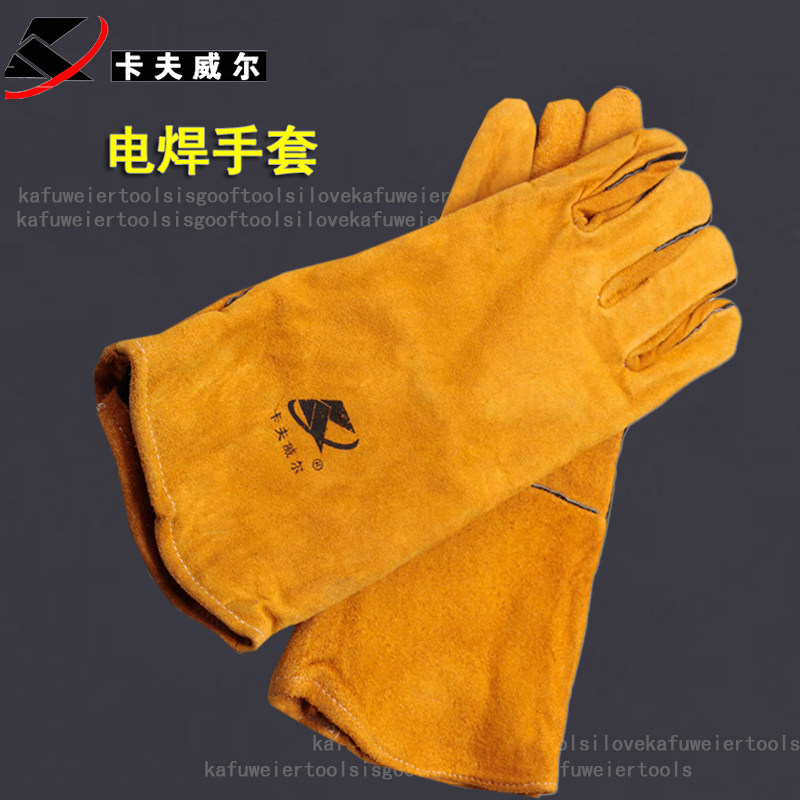 Kavwell cow leather abrasion resistant industry 500-degree high temperature resistant thermal insulation welt welding and welding welding gloves