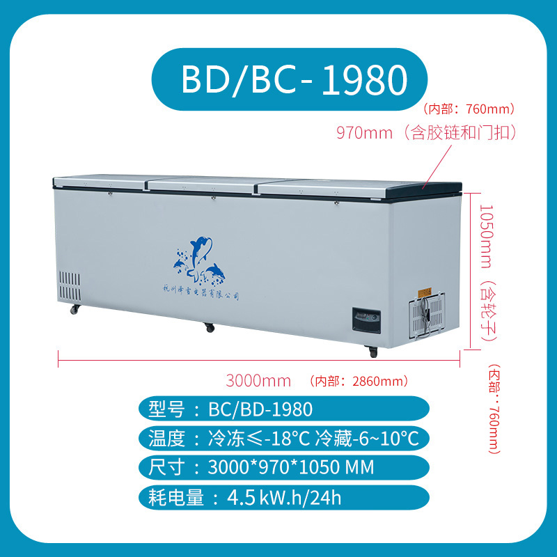 Jersey 1980 Ice cabinet 1980 super-capacity freezer refrigerated frozen fresh-keeping refrigerator horizontal frozen meat tea Domestic