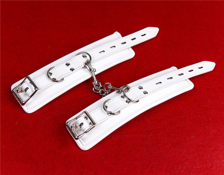 (handcuffs) - white soft leather (anklet) - white soft leather