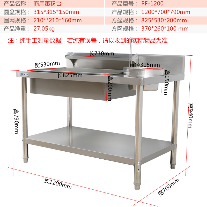 Commercial Thickening 1 2 m Fried Chicken Wrap Powder table Hamburg Shop Equipment Removable Stainless Steel Wrap worktop