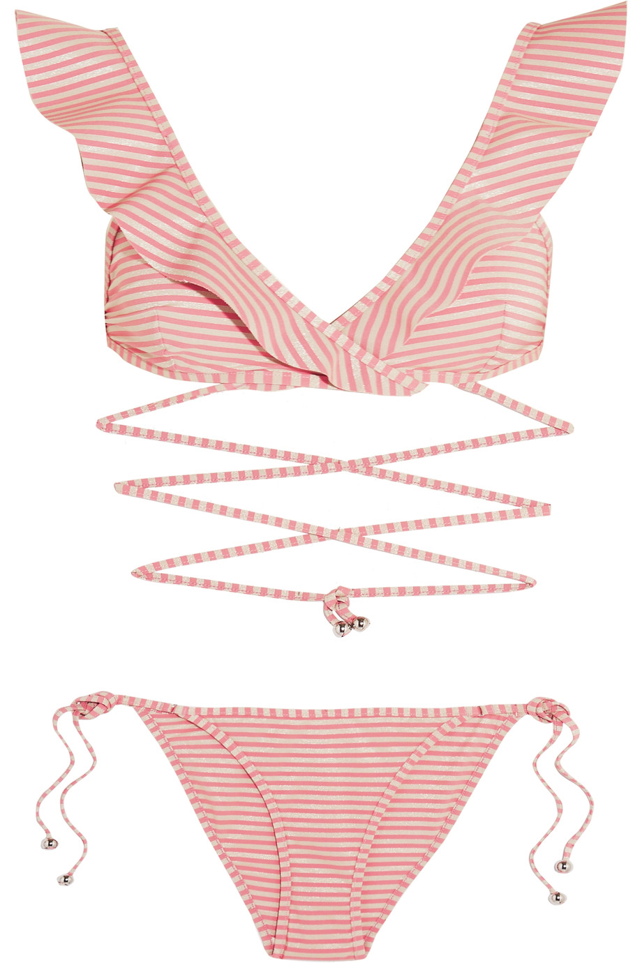 Shop Owner Recommended Small Chest Pink Striped Lotus Leaf Cuff Triangle Bikini Bubble Hot Spring Sexy Swimsuit Beach Australia