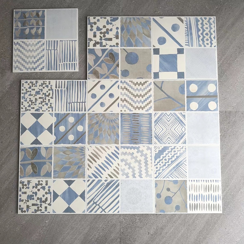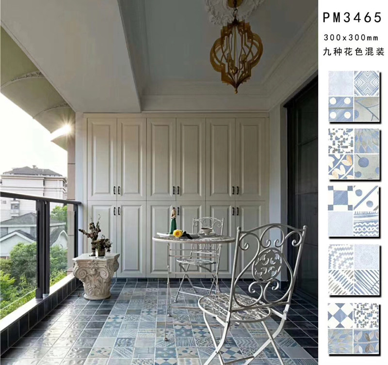 Mediterranean blue antique all-porcelain blue and white porcelain kitchen wall tiles dressing room tiles 300mm retro floral tiles