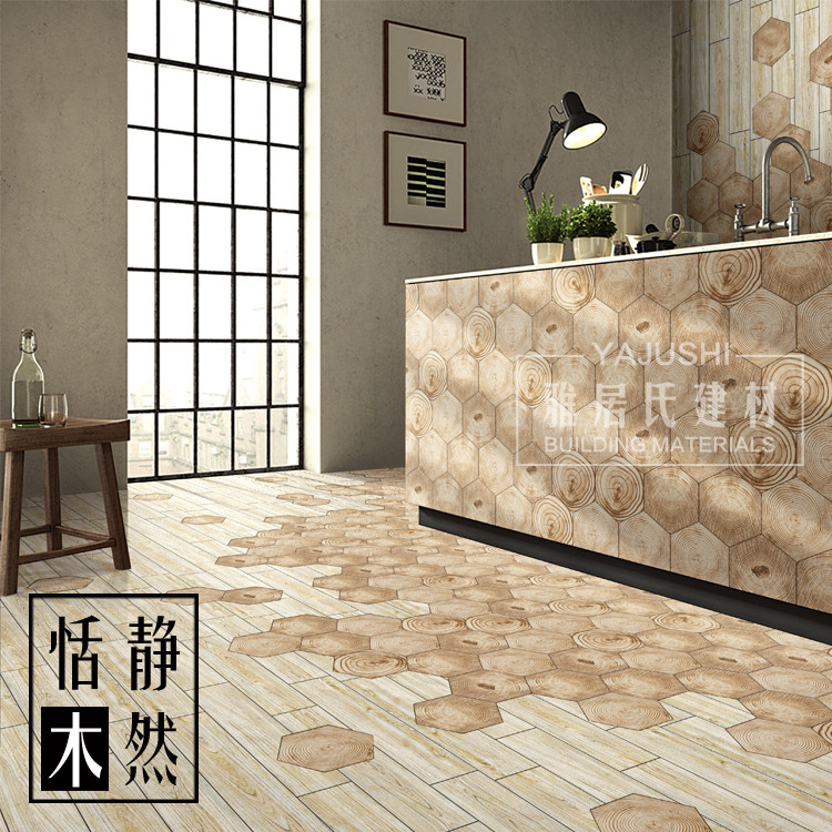 250 hexagonal tile hexagonal flower brick imitation wood grain flower sheet brick make-up room floor tile chain floor tiles