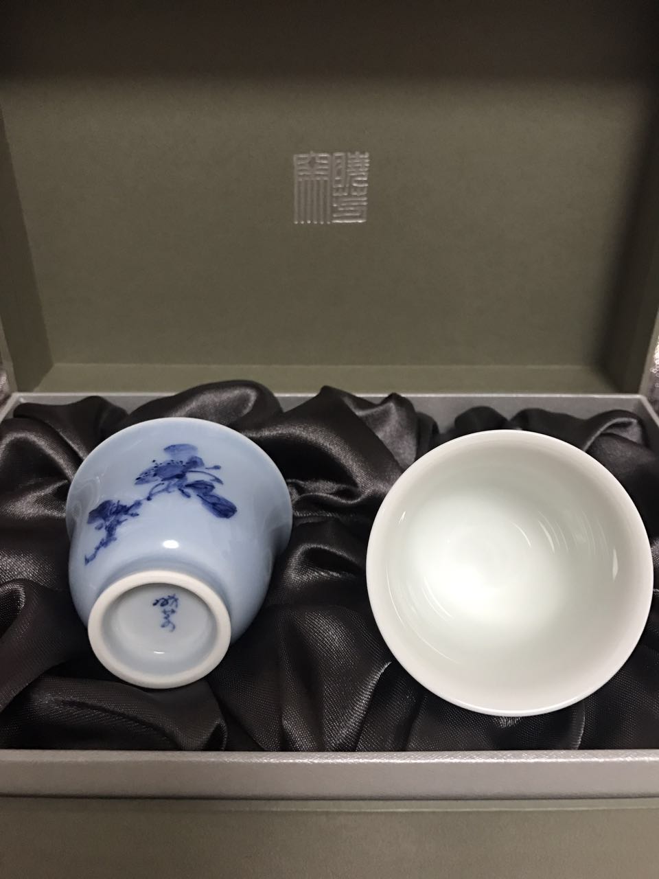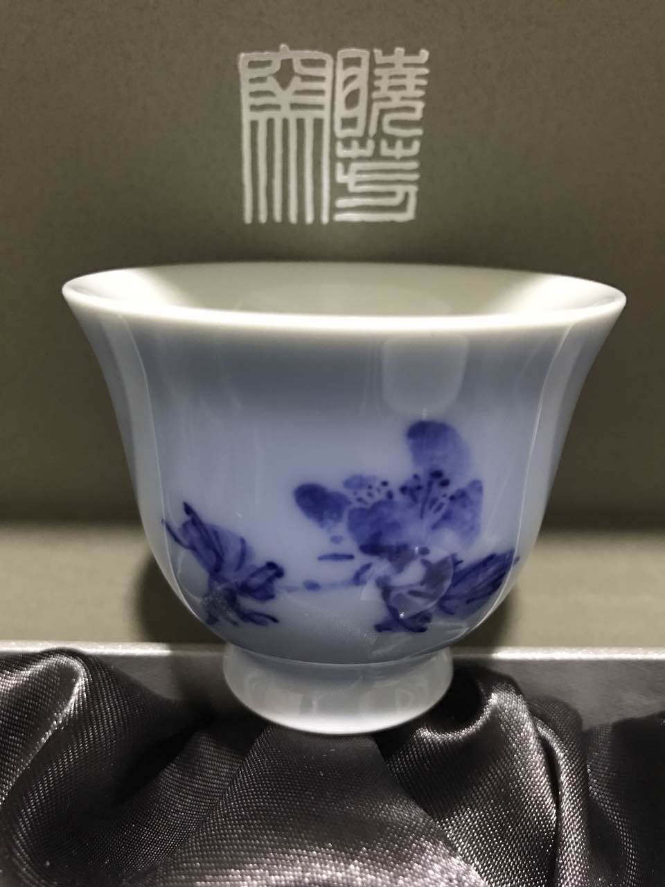 Taiwan Xiaofang Kiln Pair Cup Sky Blue Glazed Green Flowers Floral Jade Dew Cup Glazed Office Tea Cup Is Sold Out of One