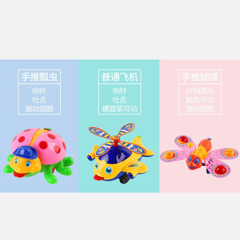 321-Hand push ladybug(random color) 312-Hand push cock(random color)325-Hand push butterfly(random color)365 Hand push plane(red and yellow random) 372-