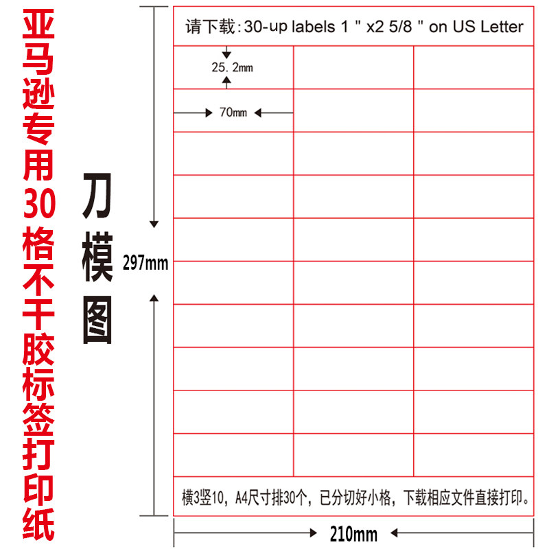 Amazon FBA label sticker Amazon special barcode sticker A4 self-adhesive copy paper 30 cells 100 sheets
