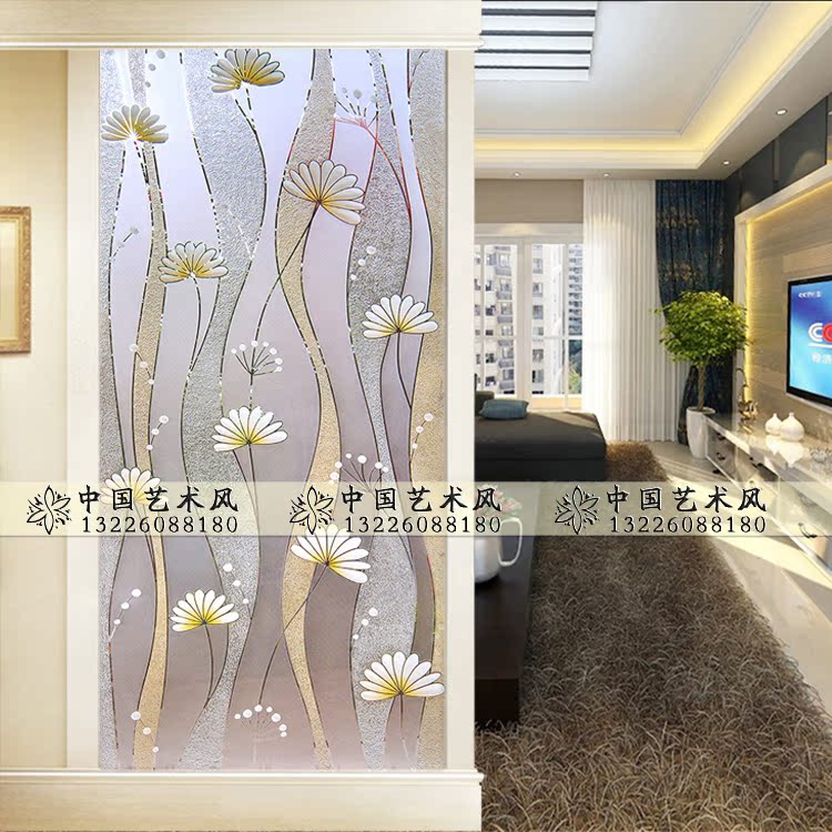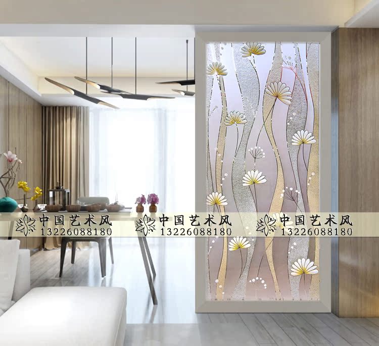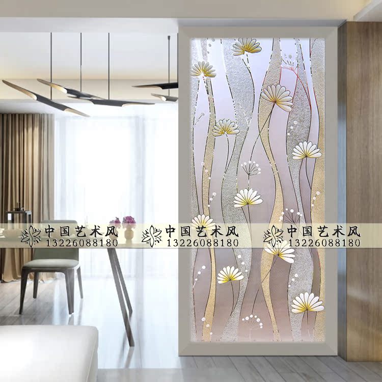 Modern Art Glass Living Room Shoe Cabinet Screen Partition Engraving process Glass Entry Genguan Background Wall Dandelion