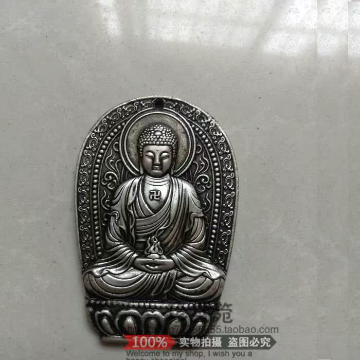 Ancient Play Collection Antique White Bronze Silver Plated Big Day Like to Sakyamuni Buddha Zodiac's Life Buddha Pendant Buddha