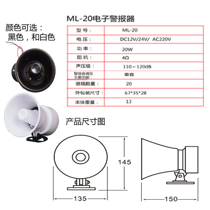 Nanzhou ML-20 electronic alarm speaker 220V24V20W Factory workshop school alarm