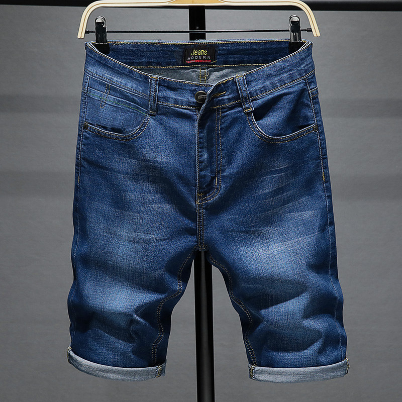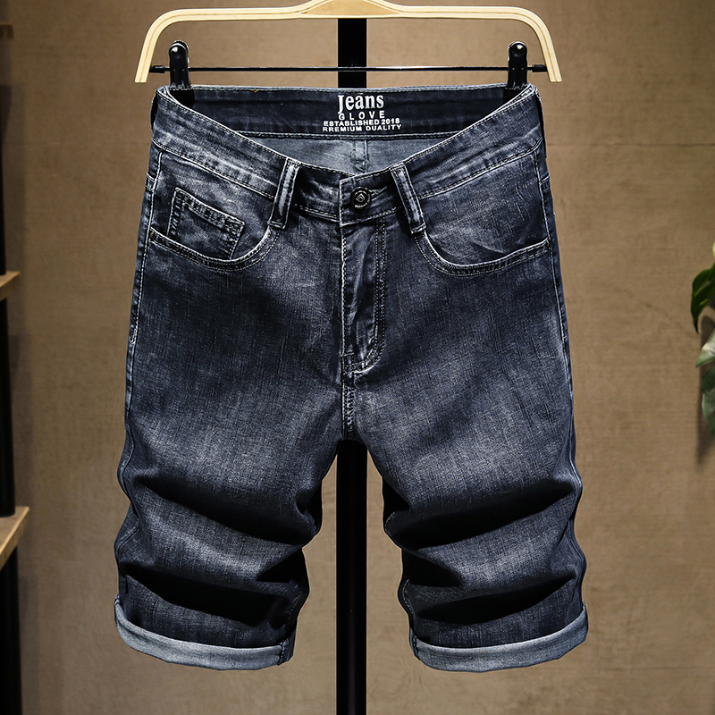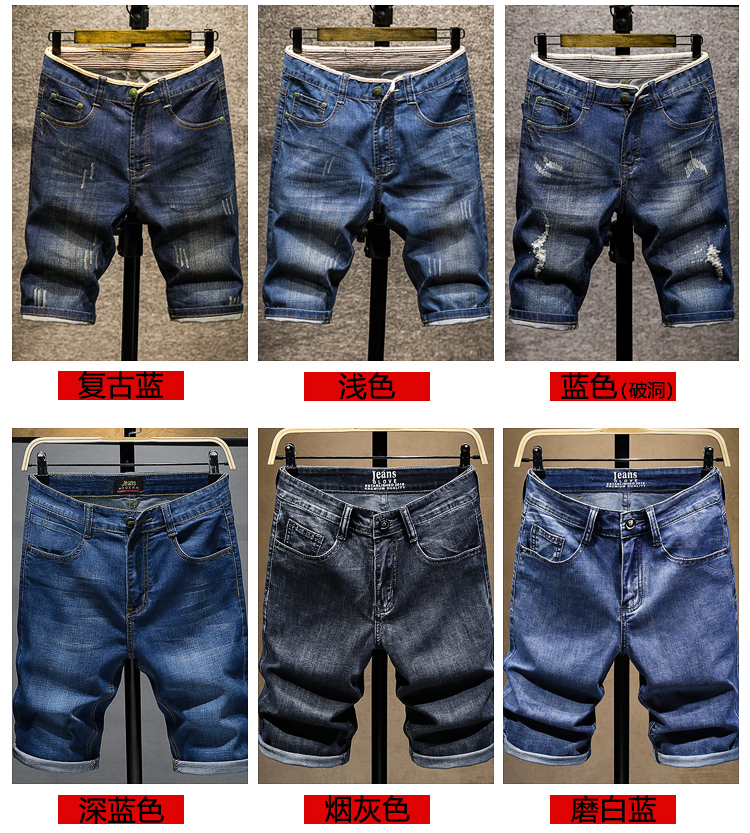Men's denim shorts thin straight slim fit summer 5-point five-point pants loose trend hole summer five-point pants men