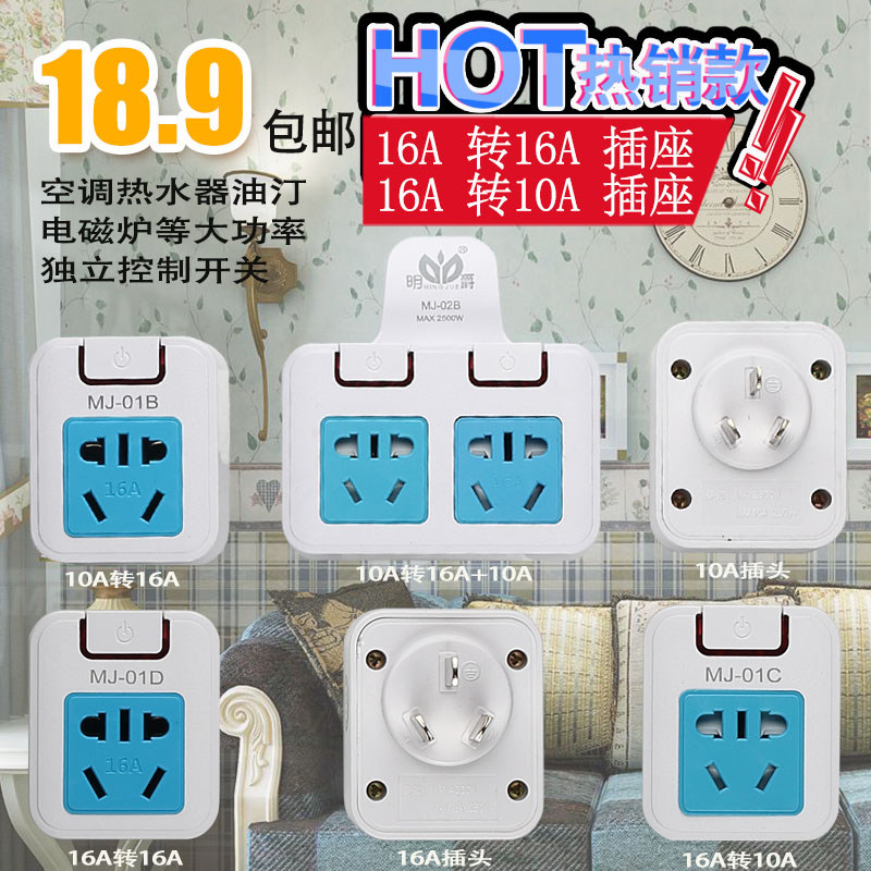 16a turn 10a converter plug one-turn, multi-wireless air conditioning oil Ting high-power water heater socket 16A4000W