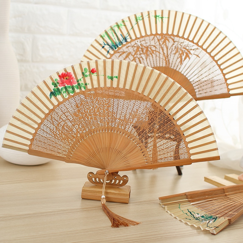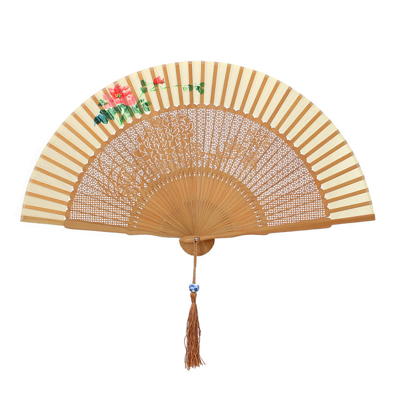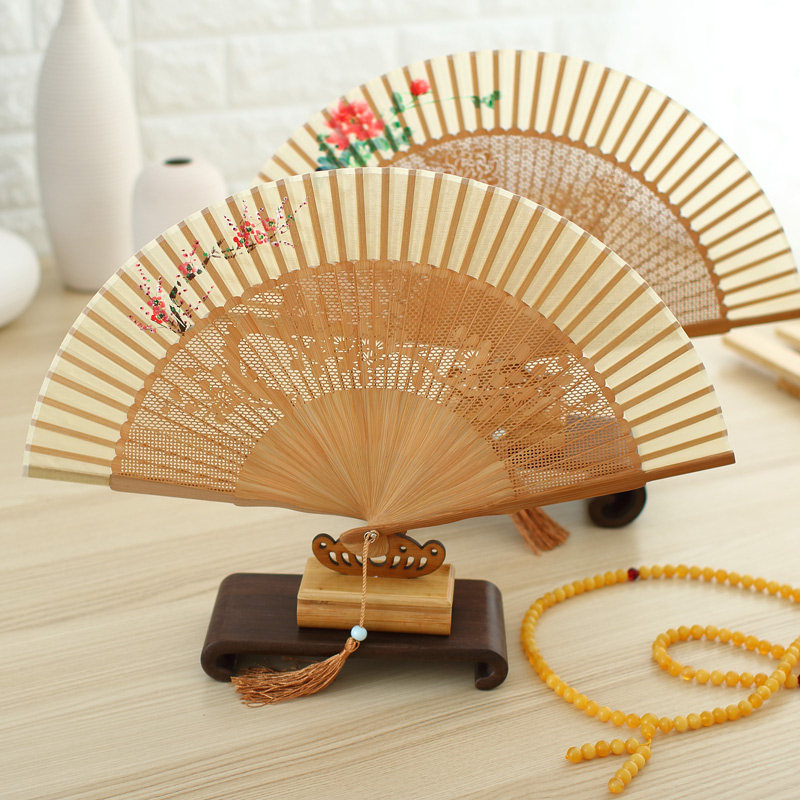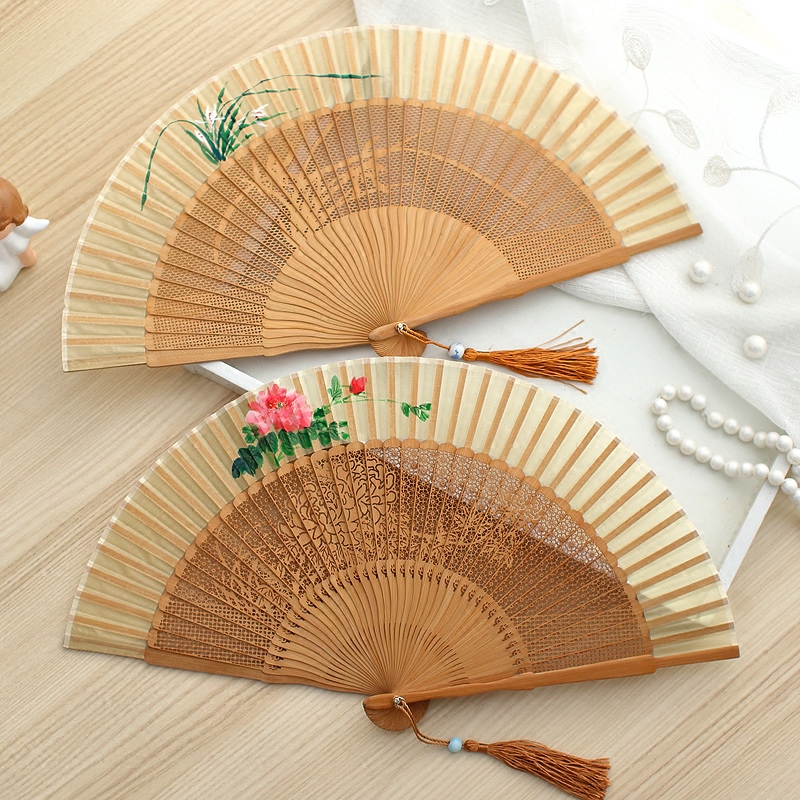 Ancient fan carved ancient fan painted silk Chinese female gift bamboo collection fan folded