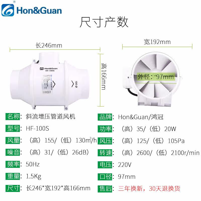 Hongguan Pipe Exhaust Fan 100S Exhaust Fan household bedroom cosmetic and powerful 4 inch ventilator