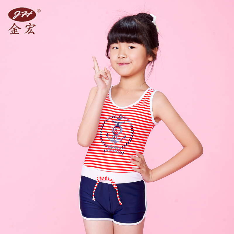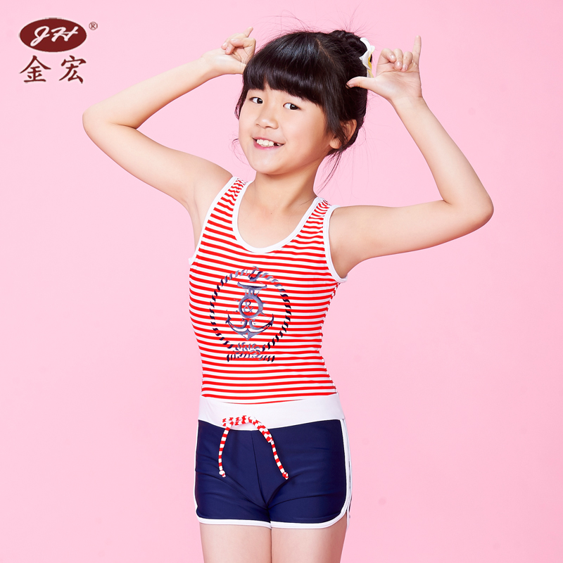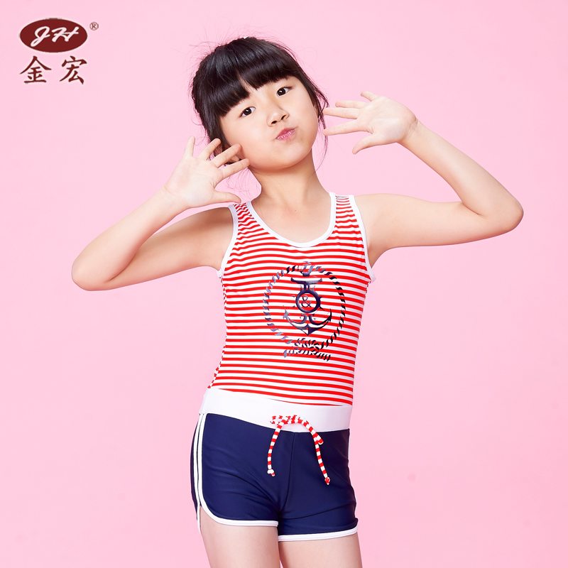 Jinhong children's swimsuit new girl one-piece cartoon schoolboy cute striped girl swimsuit