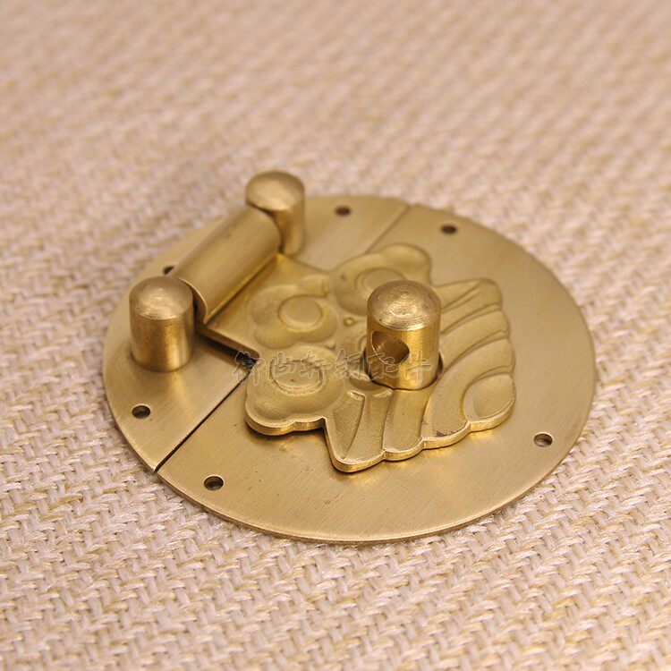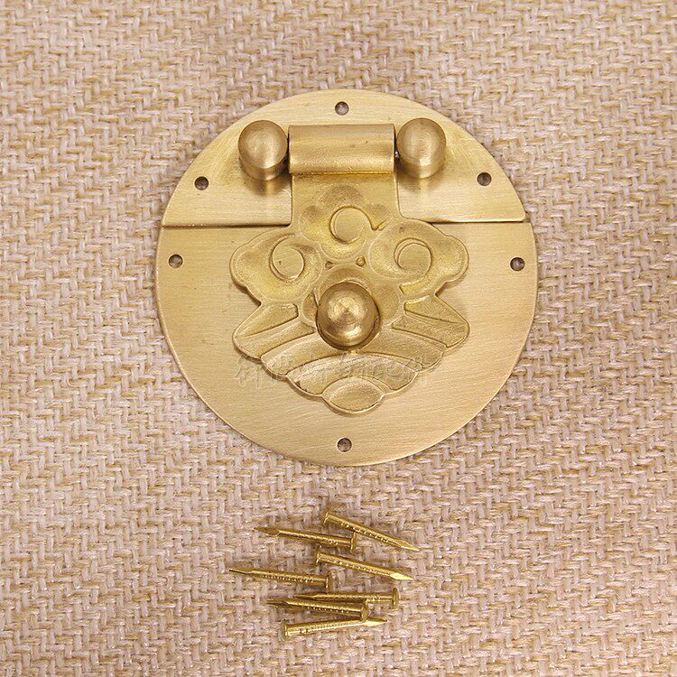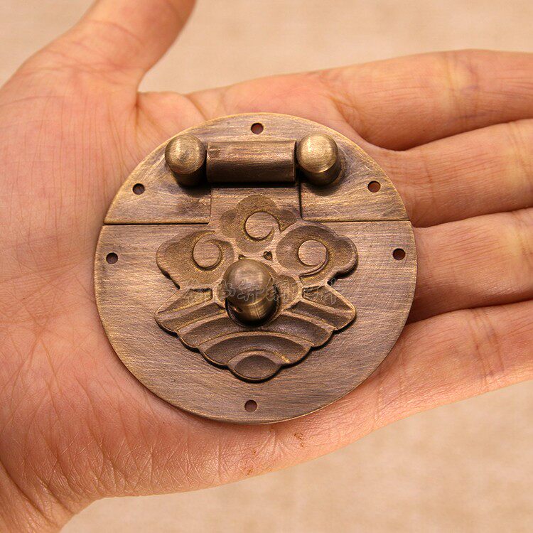 Chinese brass box row buckle old-fashioned lock-lock first accessories box Wooden Case Bag Snap-sheet Sheet Lock Snuff Lock Nose Lock Round 5 5CM