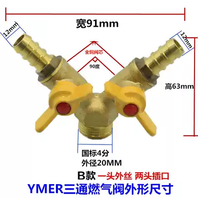 Copper Rod copper core all copper thickened gas valve tee valve 4 points brass gas valve gas switch ball valve