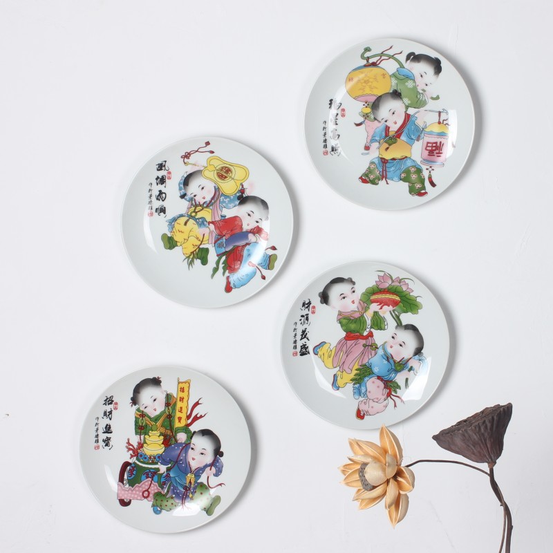 Jingdezhen Decorative Hanging Disc Wall Decoration Ceramic Wall Decoration Living Room Background Wall Composition Hanging wall Decorative Landscape Pendant
