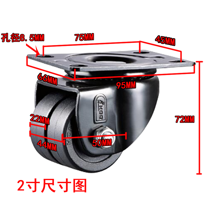 Houde 3 inch 2 5 inch 1 6 inch 2 inch heavy universal wheel double row wheel Nylon load low center of gravity caster orientation