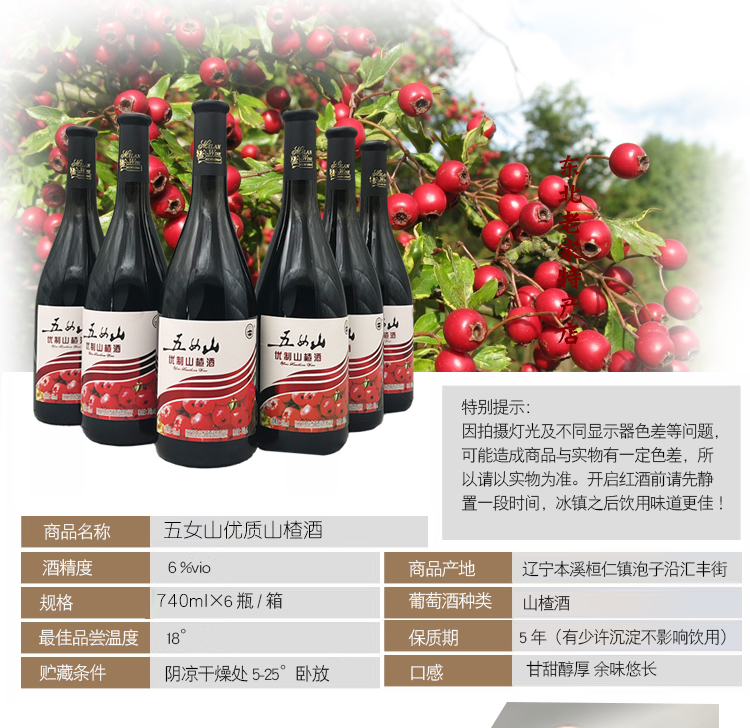 Straight hair from the place of origin, Wunvshan excellent original juice hawthorn wine fruit wine 6 bottles x 740ml