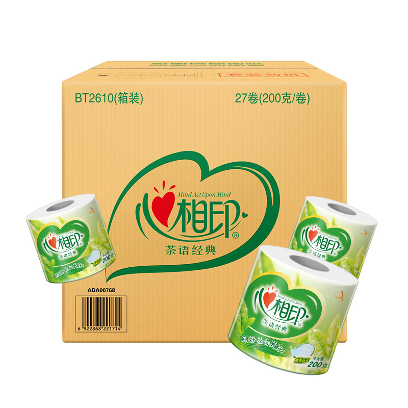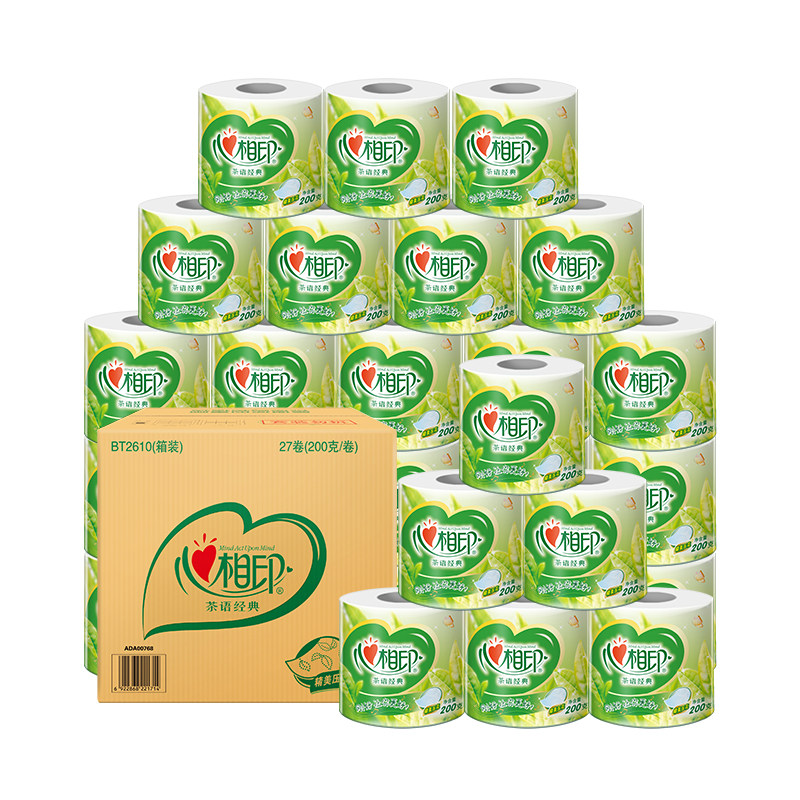 Heart print roll toilet paper Tea Language classic four-layer 200g clean household toilet paper towel 27 rolls