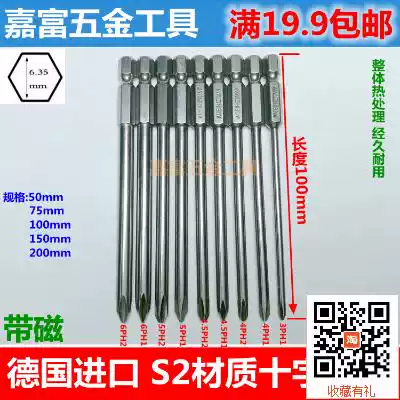 German hard S2 material cross batch head strong magnetic set electric screwdriver pneumatic screwdriver cross set batching nozzle 75MM