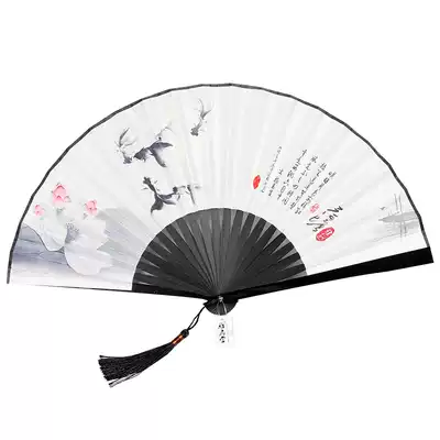 Ya Fan Tang Ink painting ancient style small fan folding fan Chinese style women's portable tassel folding fan Bamboo fan male