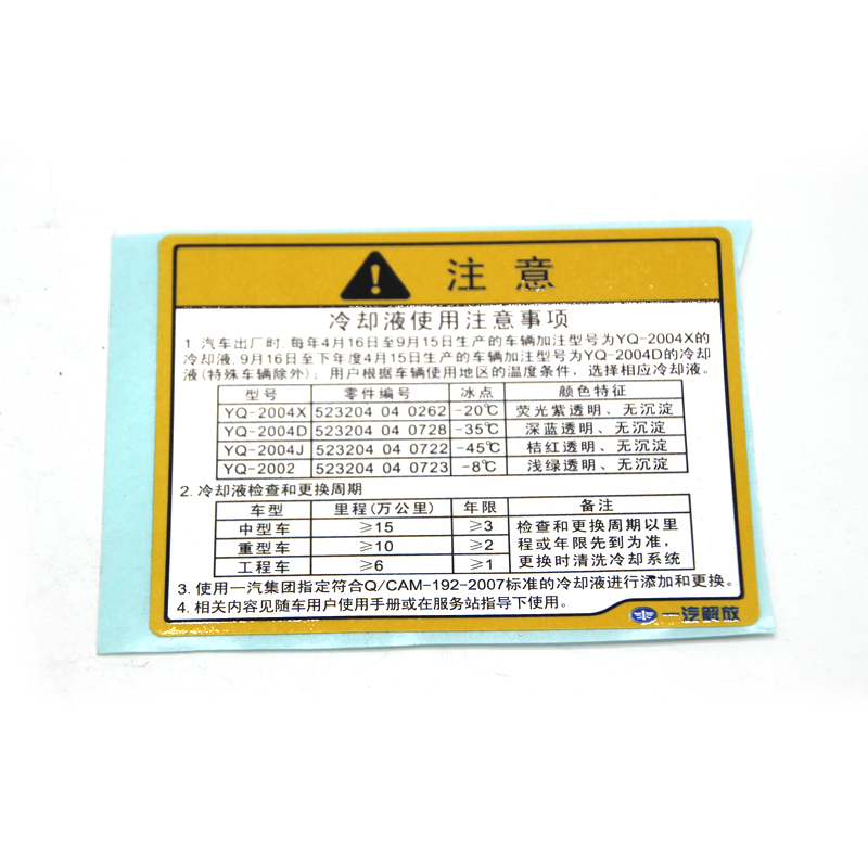 Emerald green first prize Cab flip 4 cab flip 5 hydraulic flip New triangle hydraulic flip New square air conditioning maintenance coolant Country six label 1 fuel tank cap Honor production