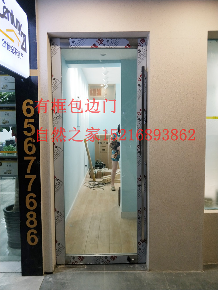 Shanghai office partition glass door set for no frame tempered glass door ground spring shop storefront glass door