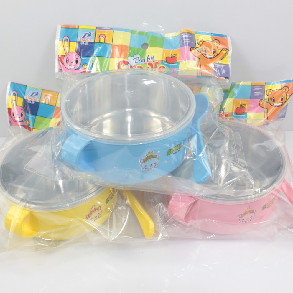 Baby products Children's tableware stainless steel bowl baby food bowl heat insulation Bowl Spoon lid set Wholesale