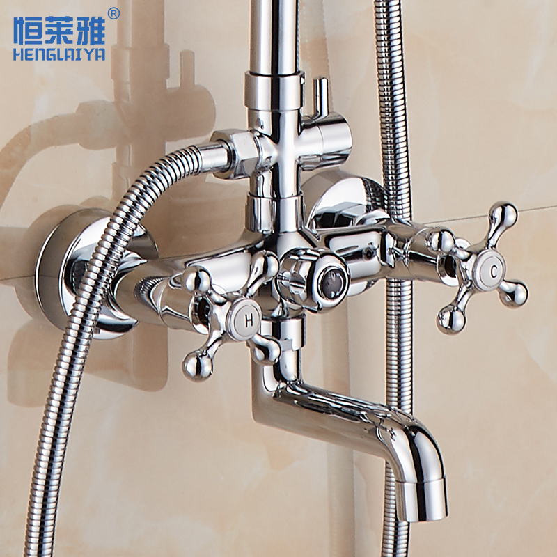 Double-controlled shower shower package copper body cold and hot tap mixed water valve lift shower bathroom nozzle