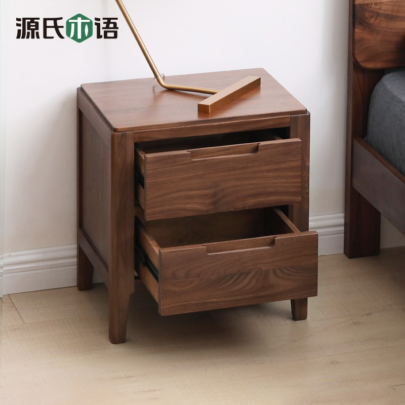Genji wood language solid wood bedside table simple modern black walnut wood sidestand two drawer cabinet wood wax oil small drawer