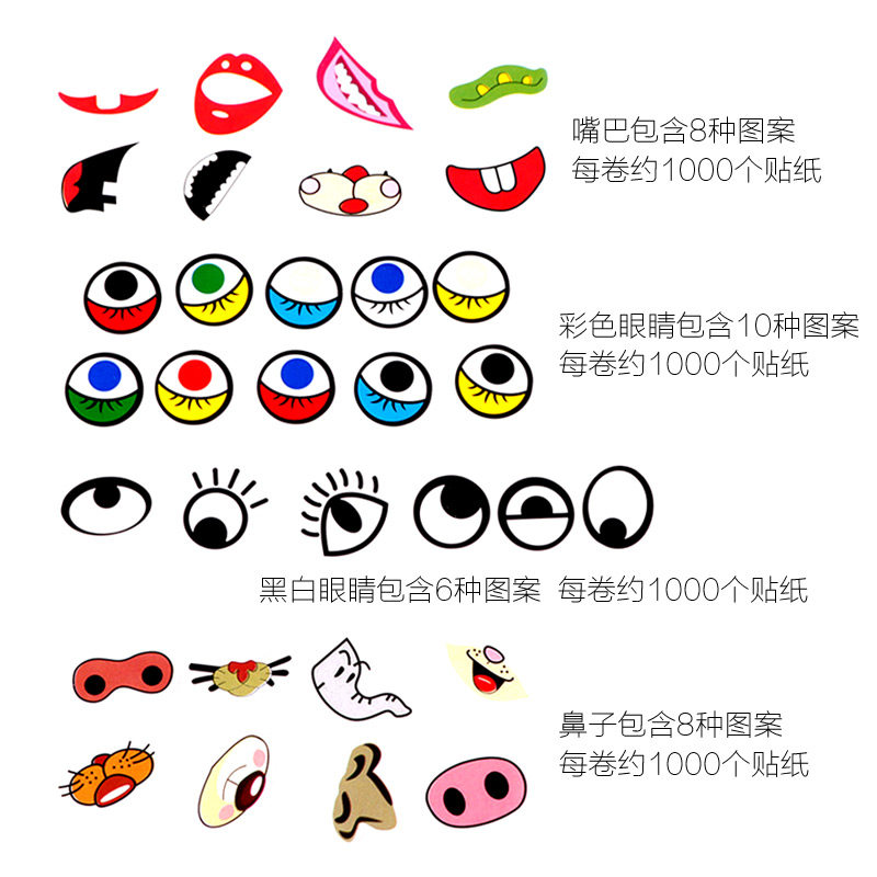 Color eye stickers Black and white eye stickers Monster eye stickers Funny beard stickers nose stickers mouth stickers