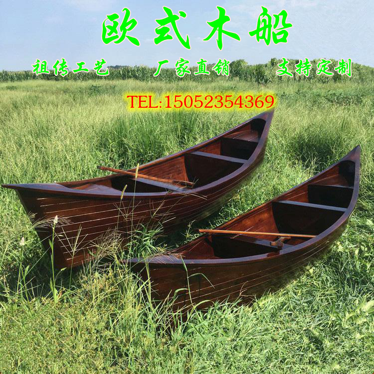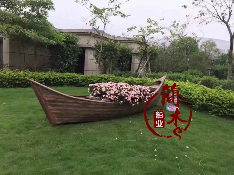 Wooden boat real fishing boat wood decoration antique sailing boat catering boat flower boat landscape canopy boat small water cruise European-style boat