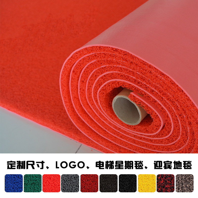 Can be cut PVC spinneret red plastic floor mat waterproof doormat non-slip into the home drawing silk circle carpet customization