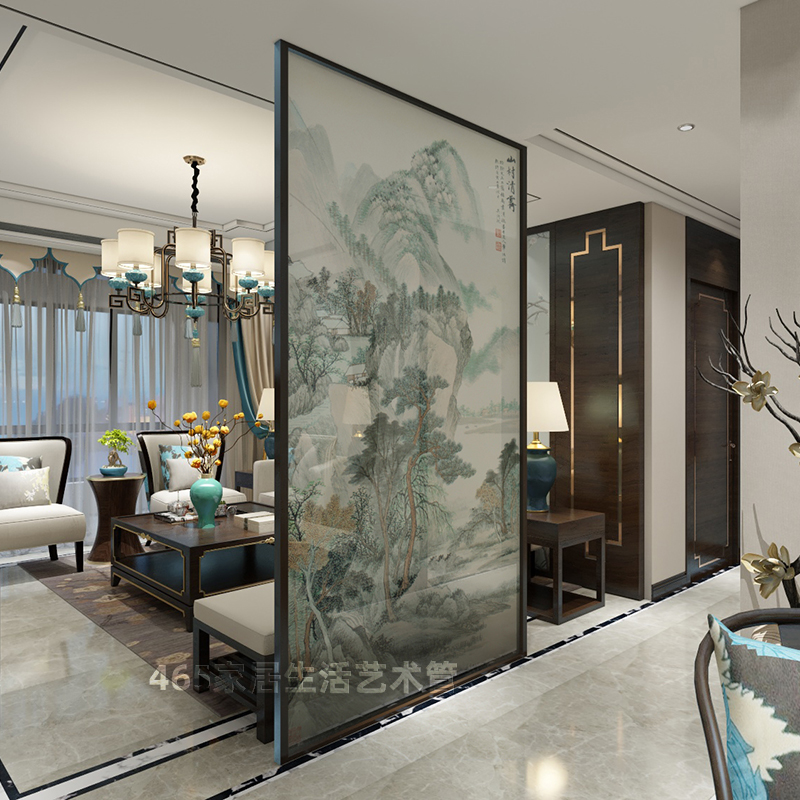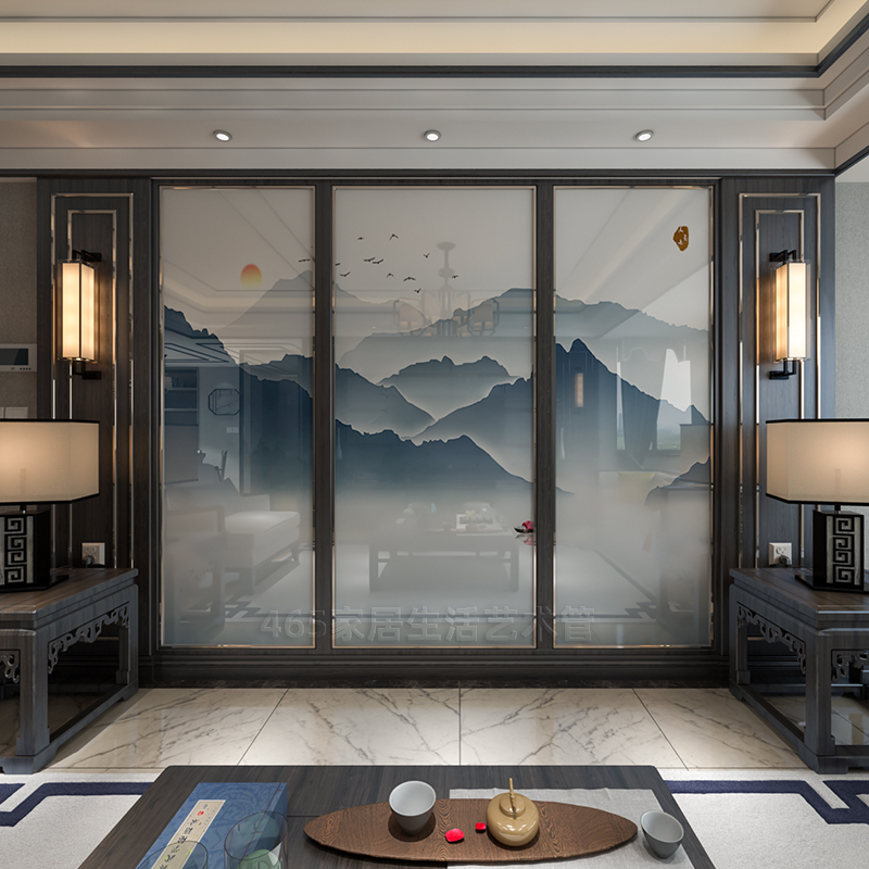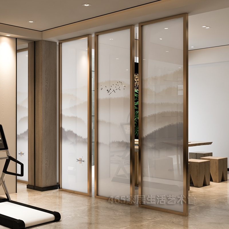 Silk glass screen partition ink landscape painting abstract artistic conception silk glass Silk Silk living room decoration