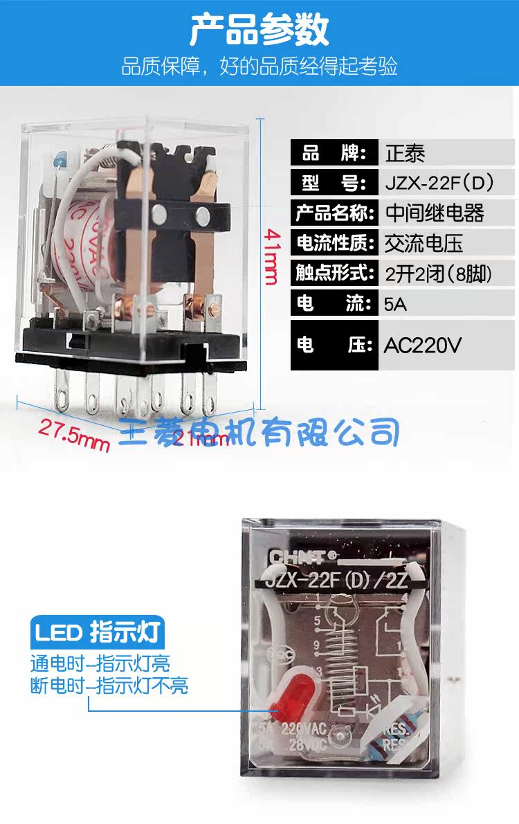 CHNT Zhengtai electromagnetic small intermediate relay JZX-22F (D) AC220V 5A 8 feet 2 open 2 closed