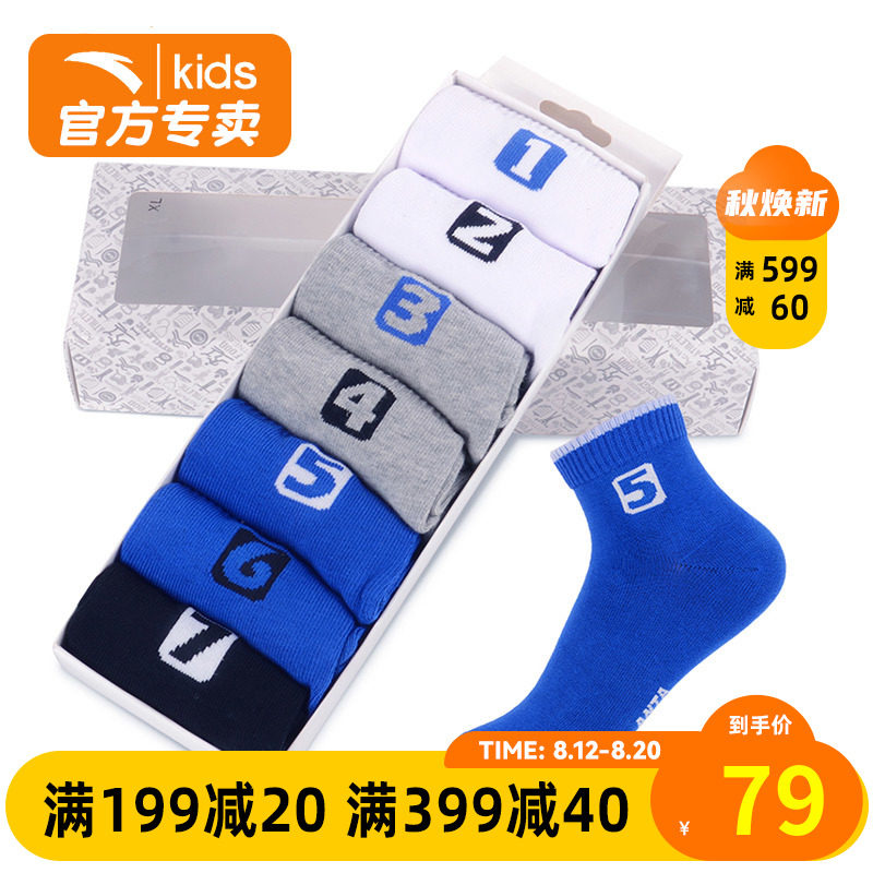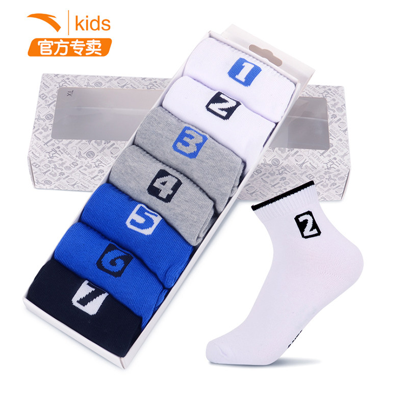 ANTA Children's Socks Autumn New Five Pairs Kids Stretch Sports Socks In Barrel Cotton Socks Breathable Sweat Absorbing Cotton Socks
