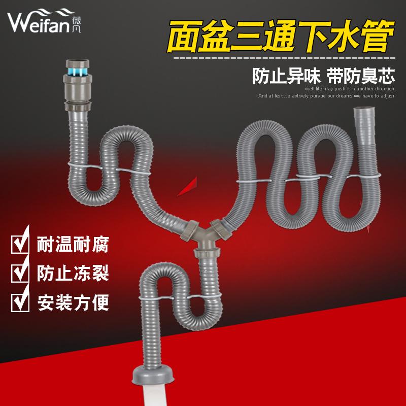 Washbasin lengthened tee hose Y type double washing machine bifacial basin sink sink mop pool Lower water pipe