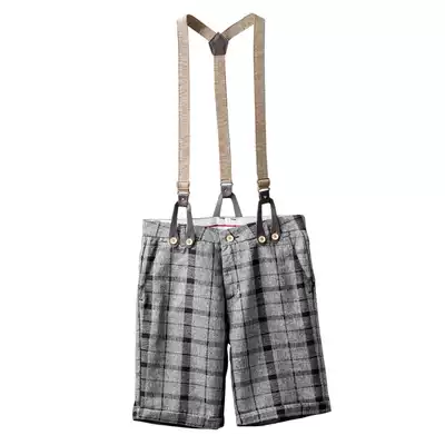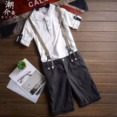 Summer British couple suspenders men slim Korean striped thin shorts beach pants boys baby bag pants