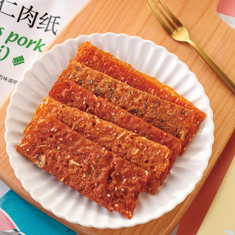 Piglet find meat nut meat paper spicy cherry blossom shrimp seaweed thin dried crispy meat slice delicious snack Xiamen specialties
