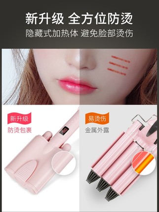 High-grade anti-scalding ceramic three-tube water ripple curling stick cake roll splint large egg roll head three-stick curling iron