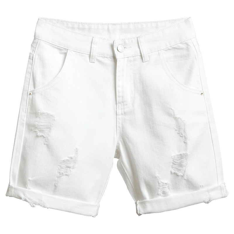 White five-point denim shorts women's 2021 summer thin section perforated straight pants high waist loose outside wearing cycling five-point pants
