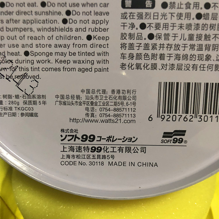 Japan SOFT99 car wax super strong decontamination gloss wax solid beauty wax 99 soft wax oil wax