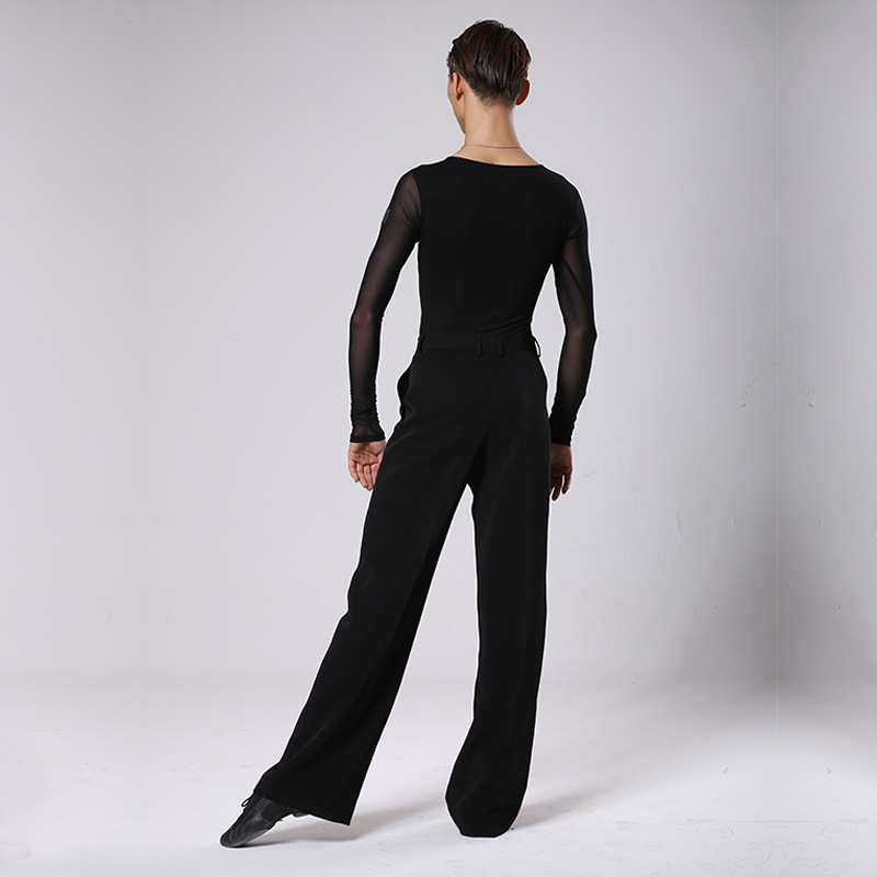 Pan's dance suit men's Latin dance blouses T-shirt wood Deir cotton fit Anlan training to wear a line