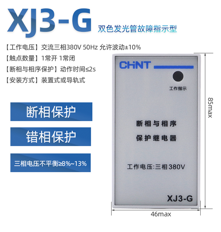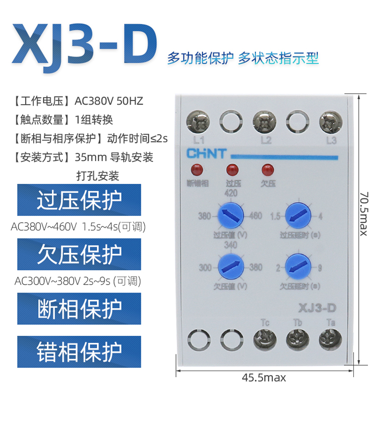 Zhengtai XJ3-GXJ3-D380V phase-off and phase-sequence protection relay Motor phase-out pump three-phase imbalance