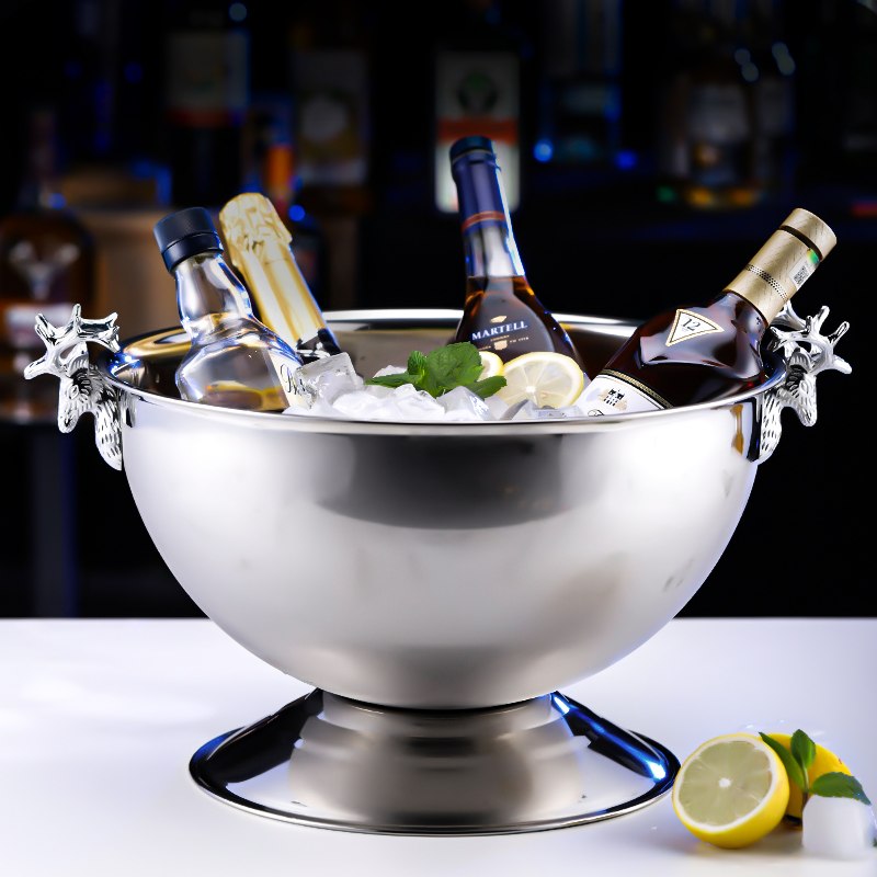 Large stainless steel champagne basin ice bucket bar ice pellets ice cold wine beer red wine ice cube ice barrel Pench large