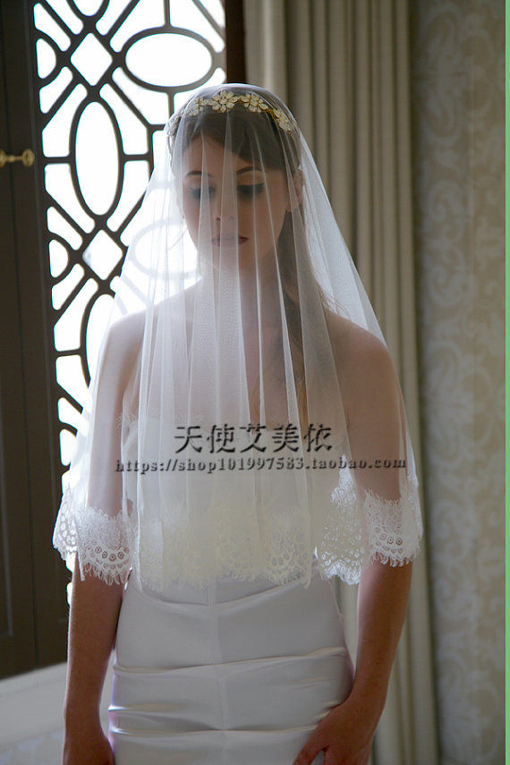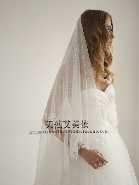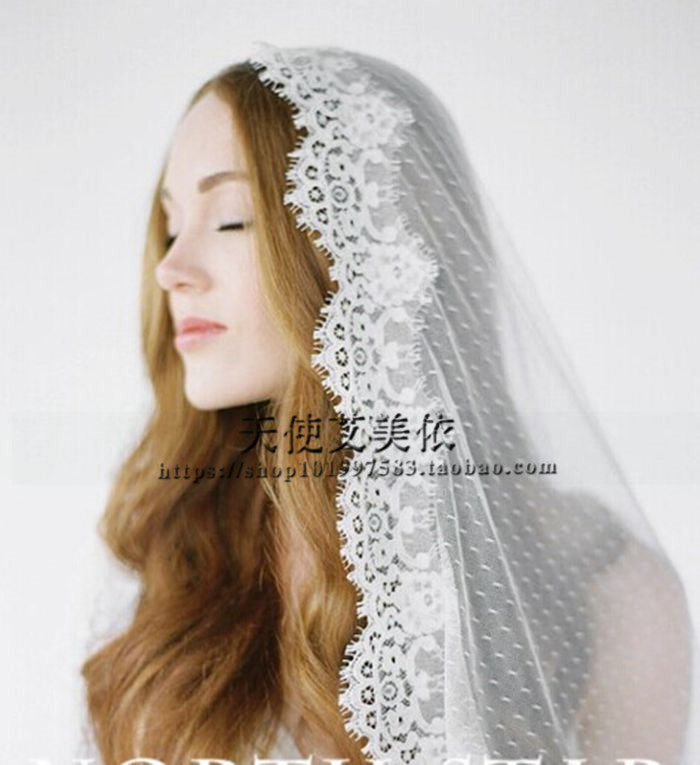 New White Wave Dot Bride Wedding Wedding Wedding Head Yarn Short And Soft Beauty Eyelash Lace Soft Yarn Head Yarn