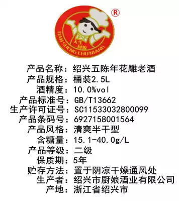 Shaoxing cooking wine Craft chef flower carving five years old old wine 5kg kitchen cooking to remove fishy characteristics of Zhejiang