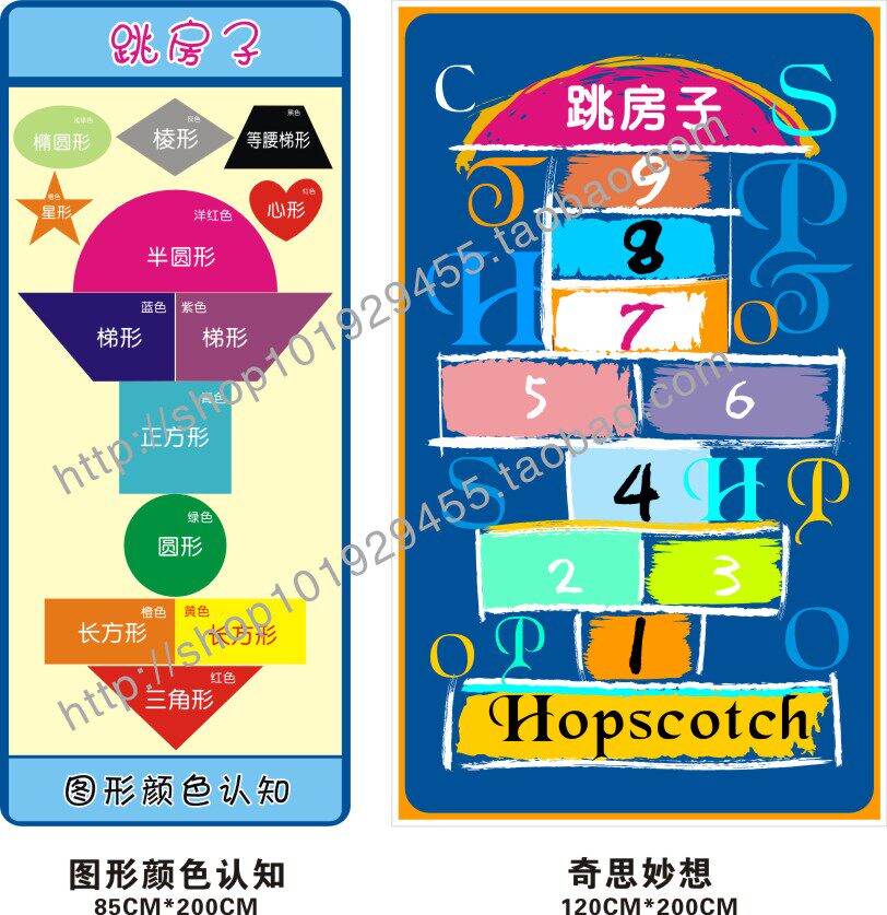 Hopscotch floor stickers children's jumping lattice floor mats children's teaching digital sports entertainment educational parent-child game toys