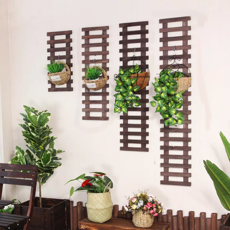 Indoor anti-corrosion solid wood balcony wall plant flower shelf living room wall hanging hanging orchid pot rack hanging decoration - Taobao